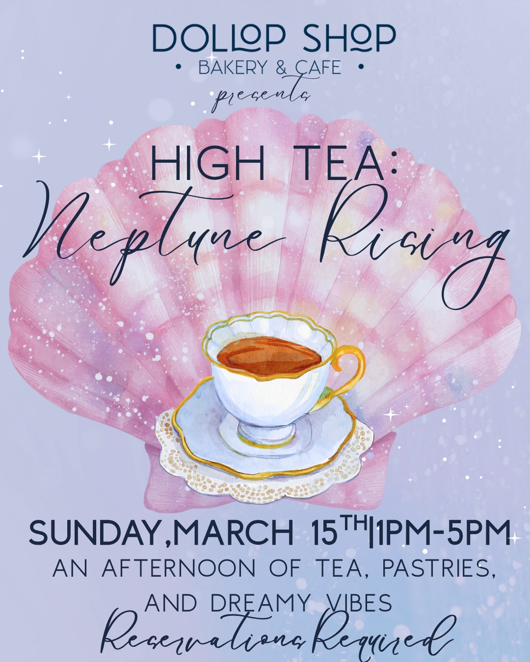 Inspired by the dreamy depth of Neptune, this month’s High Tea pairs airy sweets (like meringues dipped in ruby chocolate) with refreshing savories (like cucumber mint finger sandwiches). Tickets are $40 per person and include premium loose leaf tea plus a platter of handmade pastries to share with your party—served in our beautiful upstairs dessert parlor. Scroll for the menu preview, then invite your favorite people to join us for an afternoon designed to feel a little magical!